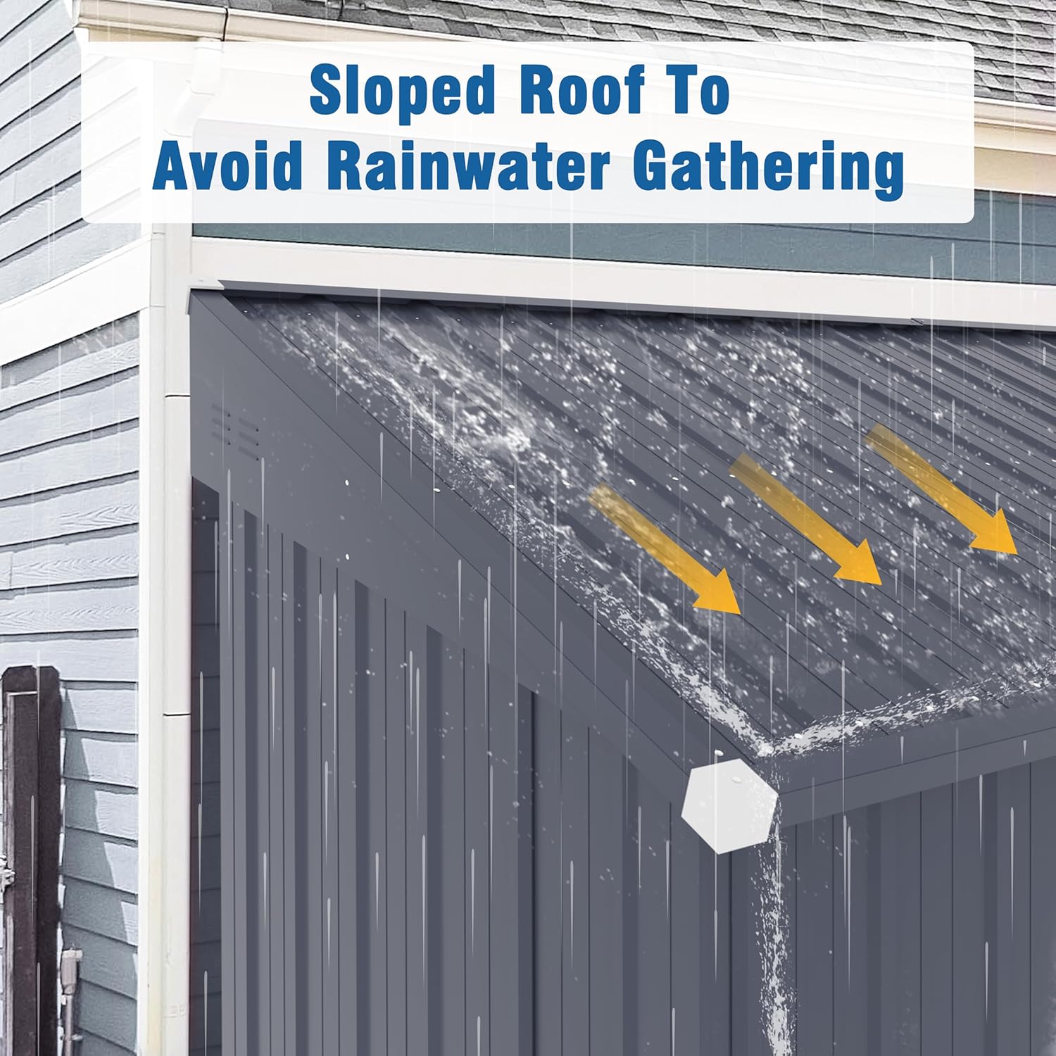 - Sloping Galvanized Metal Roof - The storage shed with galvanized sloped roof design, not only enables rapid water drainage, preventing rainwater accumulation, but also has strong corrosion-resistance capabilities. Moreover, this metal tool shed is rust-resistant and UV protected. Whether it is after a long time of wind and rain, or the sun exposure, the tool room can maintain a good condition and ensure that the tools inside are not damaged.