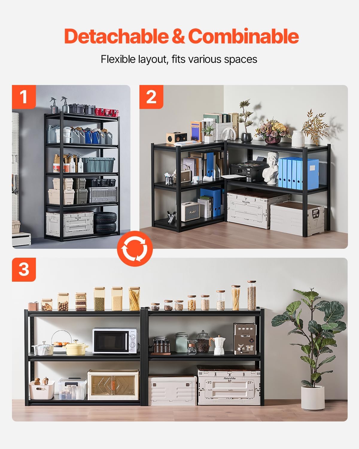 VEVOR Storage Shelves, 3000 lbs, 5 Tier Garage Storage Shelving, 18" D x 48" W x 78" H Adjustable Metal Shelves for Garage Shelves Utility Rack Shelf, Ideal for Kitchen, Warehouse, Basement, Black