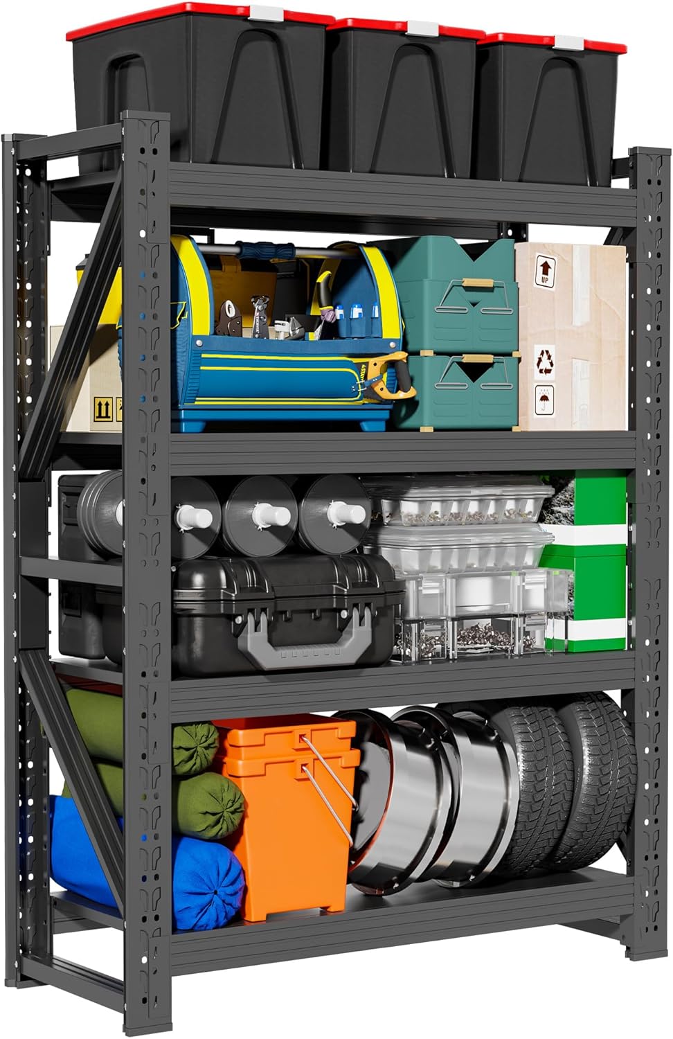 - [Heavy-Duty Steel Construction]JHYKHG 4-tier shelving unit is crafted with industrial-strength steel,each shelf can support up to 1125lbs,totaling 4,500 lb.ideal for garage storage,workshop tools,or pantry organization