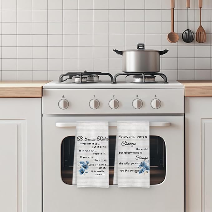 Funny Bathroom Rules Decorative Hand Towels Set of 2, Rustic Farmhouse Hand Towels for Bathroom Decor, 16x24 Inch(Blue Floral Style)