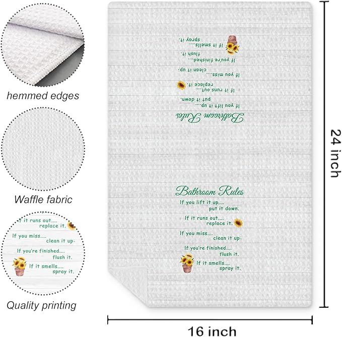 Funny Bathroom Rules Decorative Hand Towels Set of 2, Rustic Farmhouse Hand Towels for Bathroom Decor, 16x24 Inch(Sunflower Style)