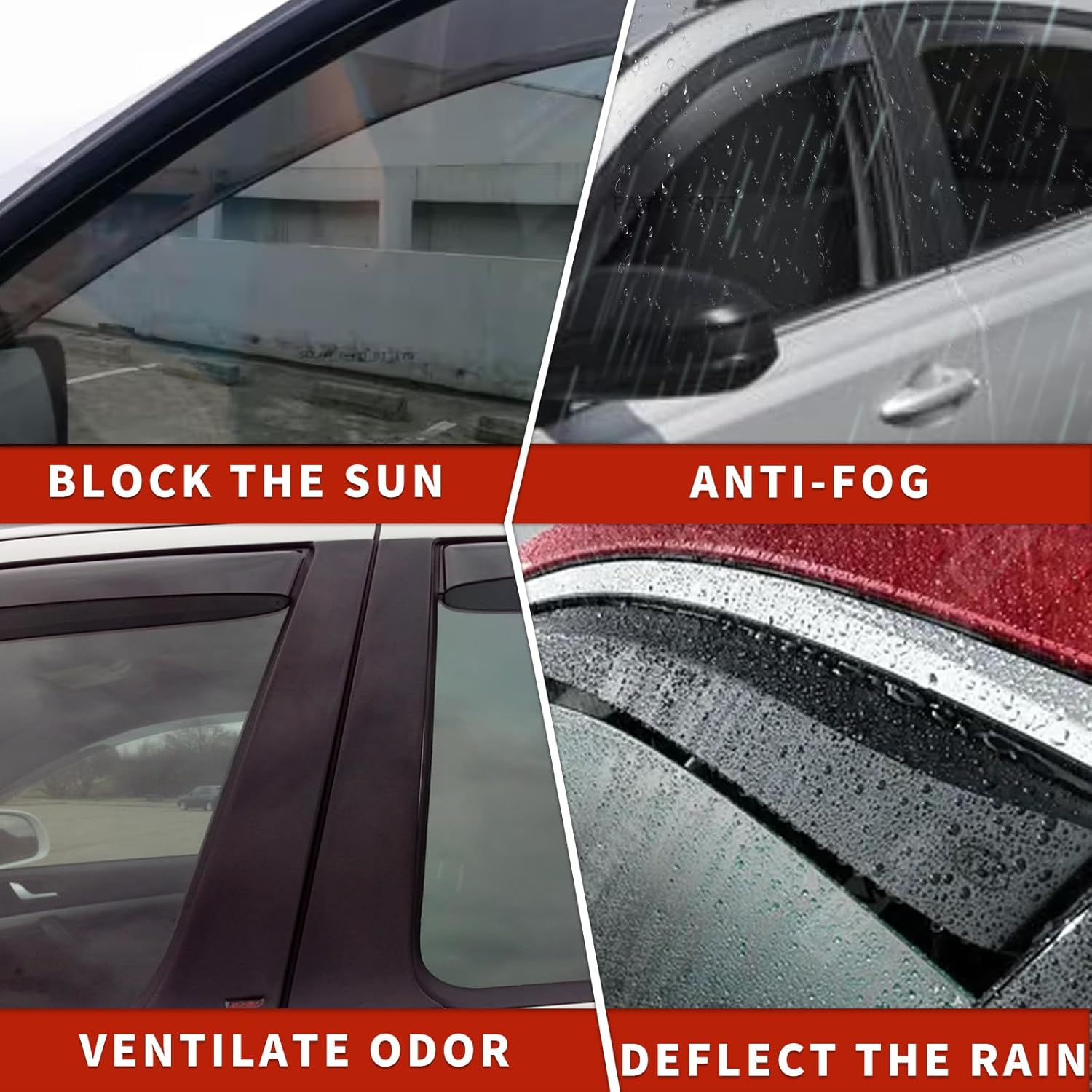 - ăImprove Driving Experienceă Allows fresh air to circulate through open windows while keeping the rain out or reduces heat. Reduce mirror and window fogging; reduce sun glare through side window. Dark Smoke translucent color will not obstruct the driver's view while driving