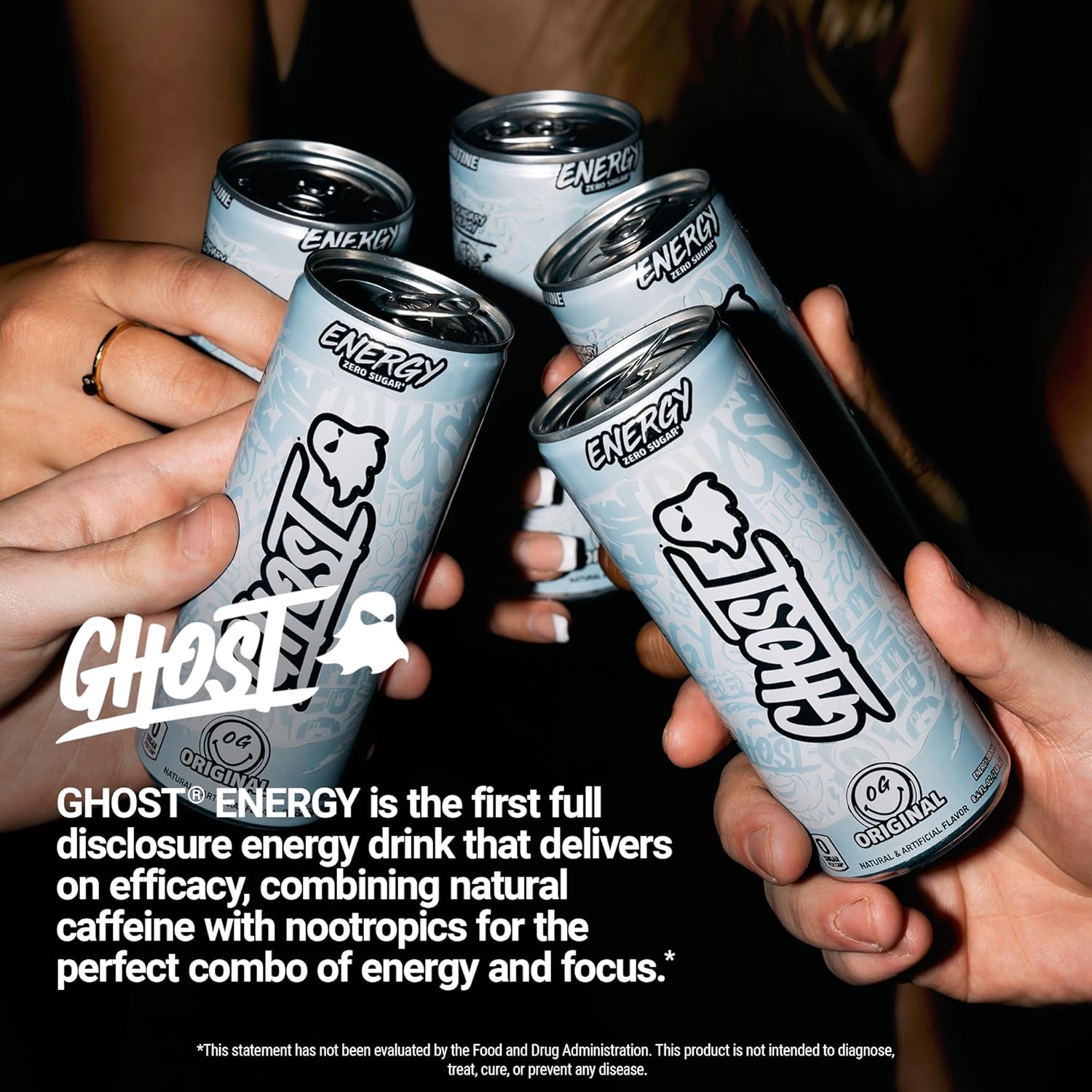 - Feel Good Energy: GHOST Energy is the fully transparent, fully loaded energy drink we’ve all been waiting for. Authentic Flavors. Zero Sugars.* No BS. Smooth and fruity with notes of bubble gum, OG is crushable for any occasion. Rock it with your favorite mixer or enjoy solo! 24-pack case contains 8.4oz cans. Only intended for persons 18 years or older. *GHOST Energy is low in calories.