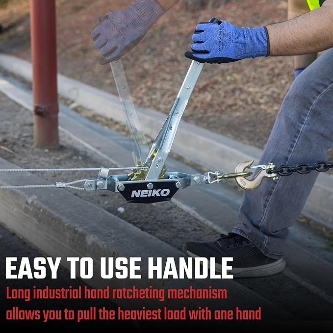 NEIKO 02251A Come Along Winch, 1-Ton (2,000 lbs) Pulling Capacity, 5.9Ft, 2 hook, Heavy Duty Power Cable Come Along Tool with Dual Gears, Hand Winch Cable, Automotive Hoist Winch Puller, Recovery Gear