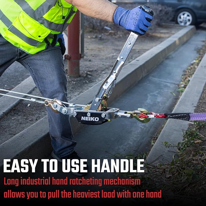 NEIKO 02254A Come Along Winch, 4-Ton (8,000lbs) Pulling Capacity, 9.8Ft, 3 Hook, Heavy Duty Power Cable Come Along Tool with Dual Gears, Hand Winch Cable, Automotive Hoist Winch Puller, Recovery Gear