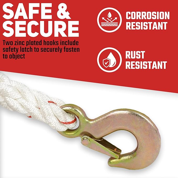 - WINCH HOOK: Heavy duty puller steel construction for added durability; hooks and gears are zinc plated for a long-lasting life in your garage or workshop when pulling, dragging, lifting, or stretching. Safety latch on all hooks to prevent accidents or slipping off.