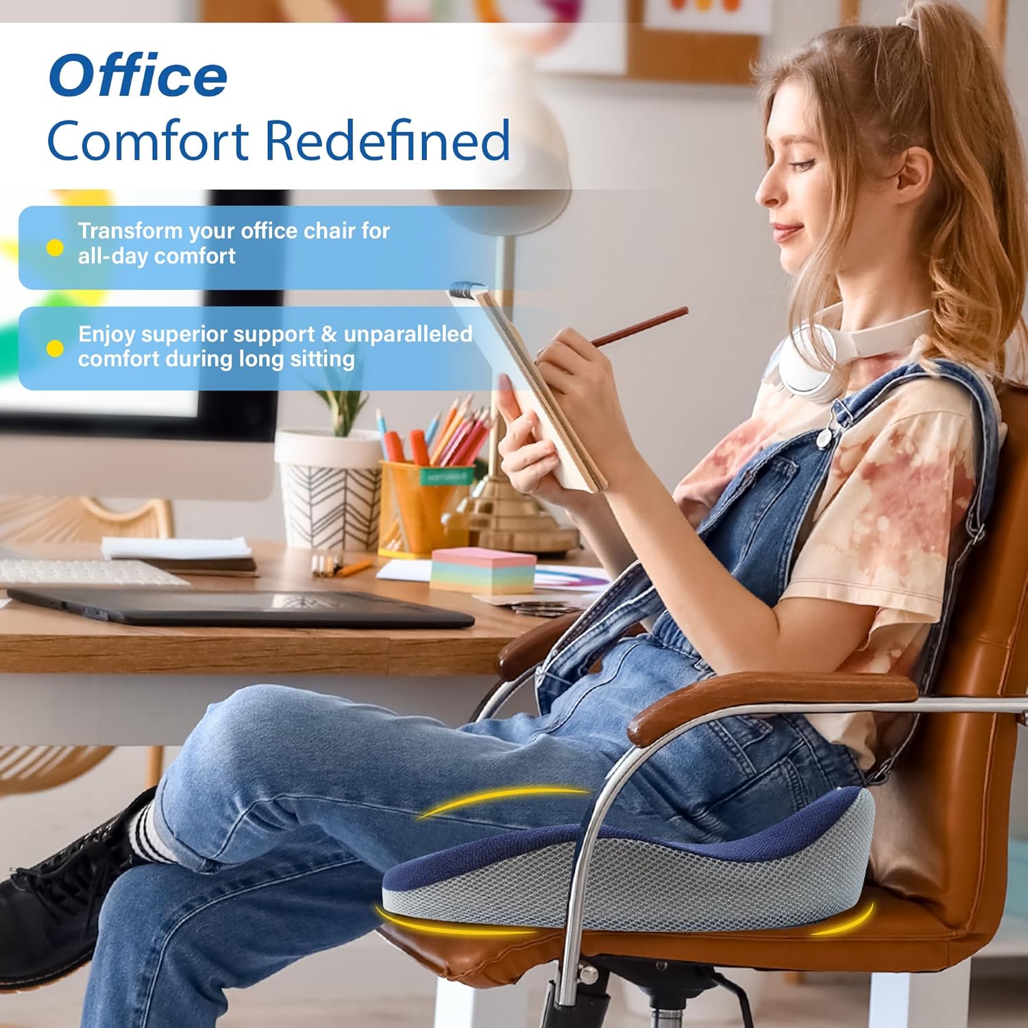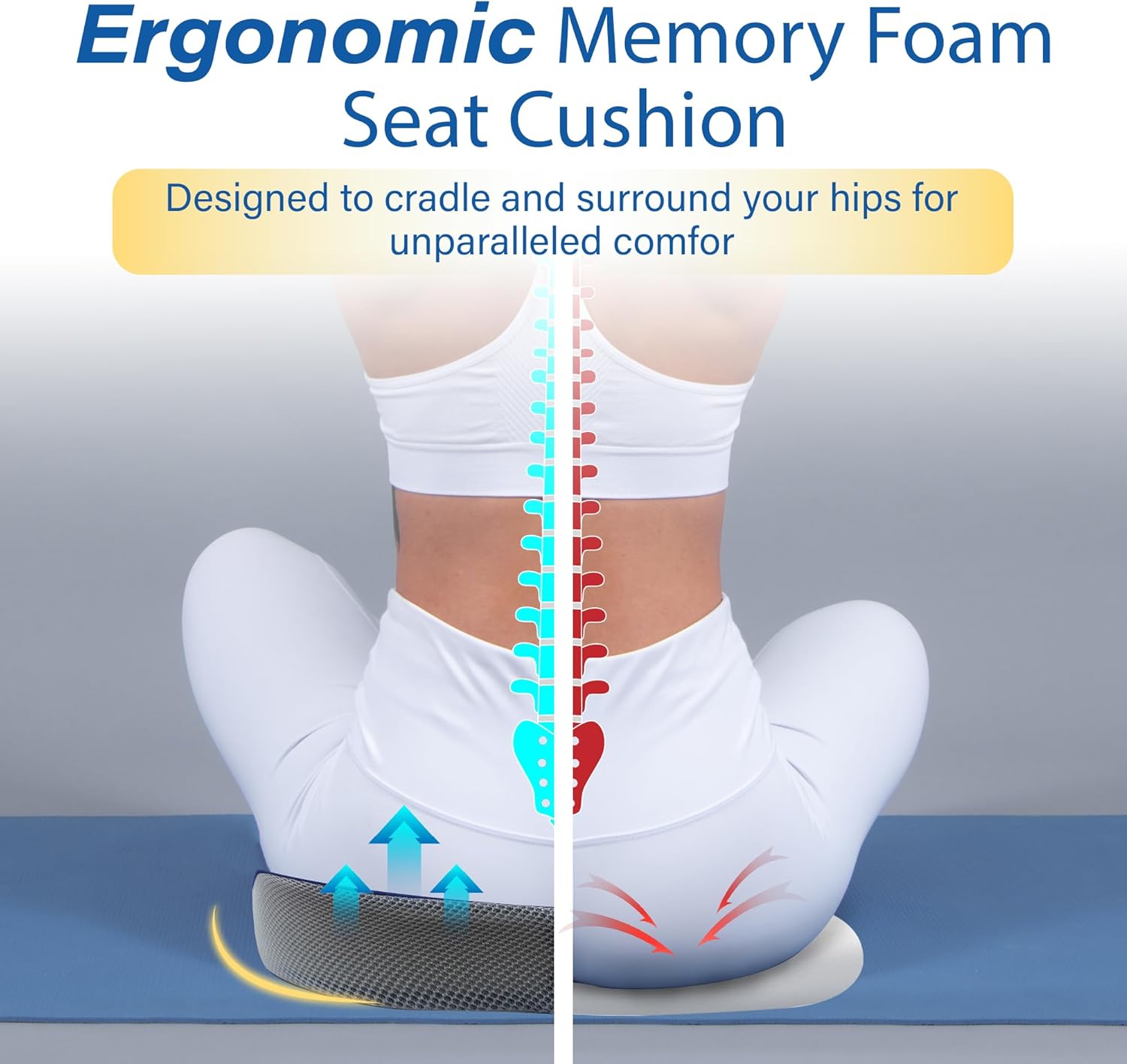 - Ergonomic Seat Cushion & Optimal Driving Comfort - Upgraded “U”shaped cushion is specially designed for comfy and health. Larger and thicker, perfectly cradles your butt, provides comprehensive support. High-density memory foam car seat cushion relieves sciatica, lower back, tailbone pain