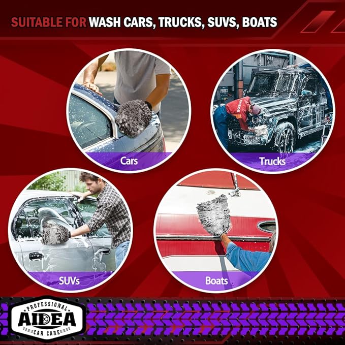 - Machine Washable & Dryable: AIDEA car wash mitts are reusable and can be washed hundreds of times; maintains absorbency and softness; safe for use on various vehicles and surfaces, including cars, trucks, and boats