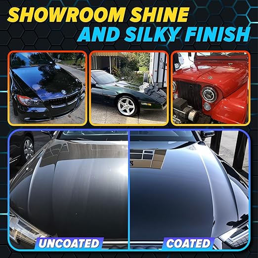 - Restores Paint & Adds a Hydrophobic Ceramic Shield – Unlike regular polishing compounds for cars, our advanced formula not only removes imperfections but also enhances gloss and adds a protective Ceramic Silk barrier that repels water, dirt, and contaminants.