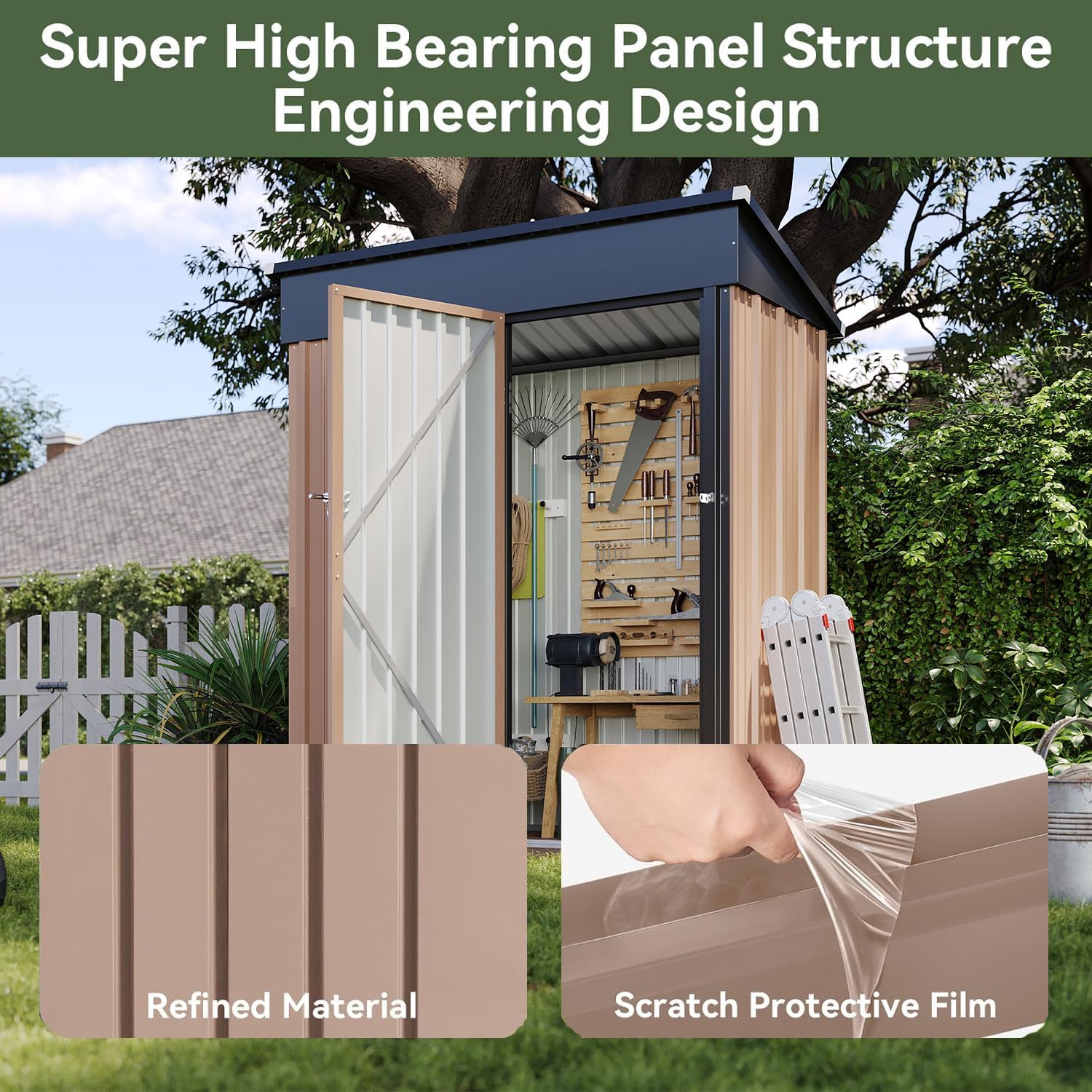Aoxun 5x3 FT Shed Outdoor Waterproof Storage Shed Metal Garden Shed with Lockable Doors & Slooping Roof for Backyard, Patio, Poolside (Brown)
