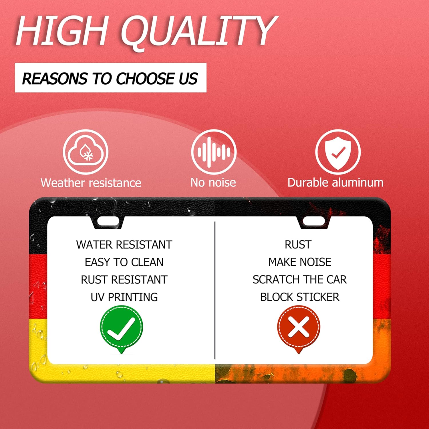 - 【Material】Our License Plate Frame Is Made Of Stainless Steel, Strong And Durable.