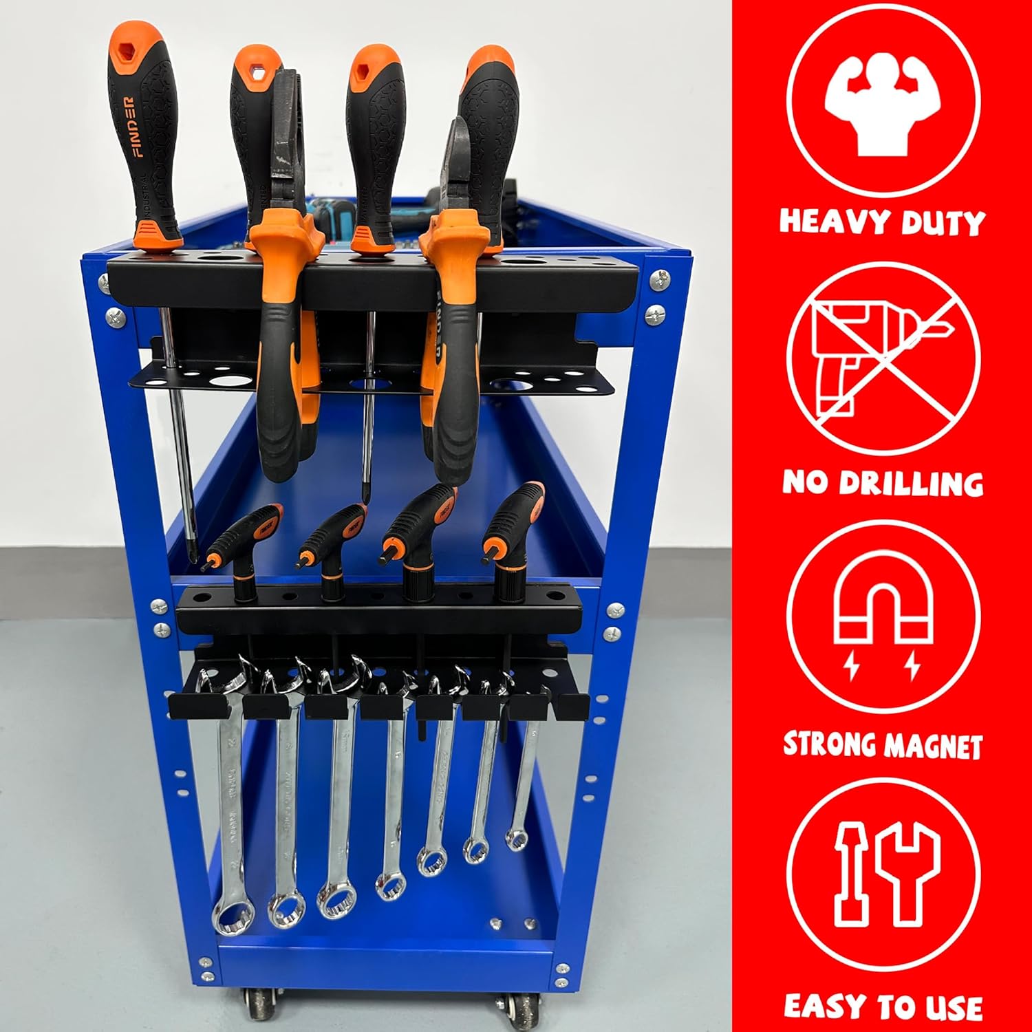 - 【Utility Storage Magnetic Wrench Holder】: The magnetic metal storage holder can firmly attaches screwdrivers, wrenches, pliers and other tools to keep your workspace tidy. Maximize the vertical storage space of the garage, workshop or home tool box