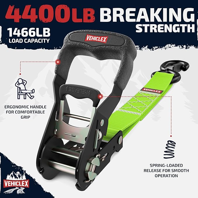 - 1.5" heavy-duty straps with 4,400 lb break strength keep cargo secure and prevent damage during transport