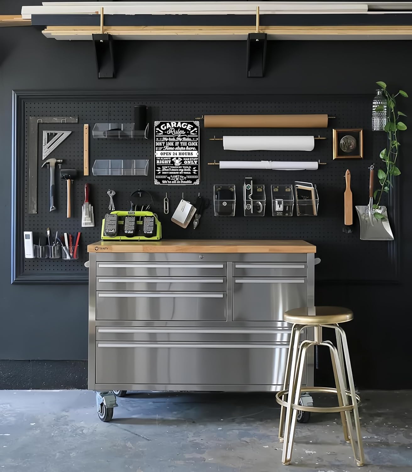 - Humorous & Authoritative Design: Features playful garage rules like "My tools. My Rules" and "Don’t touch my tools," adding personality to any workspace.