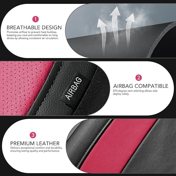 - AIRBAG COMPATIBLE - 270-degree OEM airbag stitching seam with safe seam technology allows the cover stitching to separate for side airbag deployment in the event of an accident.