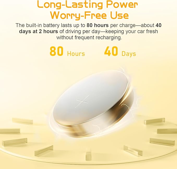 - [Interactive Motion-Activated LED Lighting] -- This car fragrance features 6 adjustable light colors to create your personalized in-car atmosphere. With an intelligent sensor, it lights up when the car starts and turns off when the car stops—no manual operation needed. Enjoy synchronized fragrance and lighting, adding style and comfort to every drive.