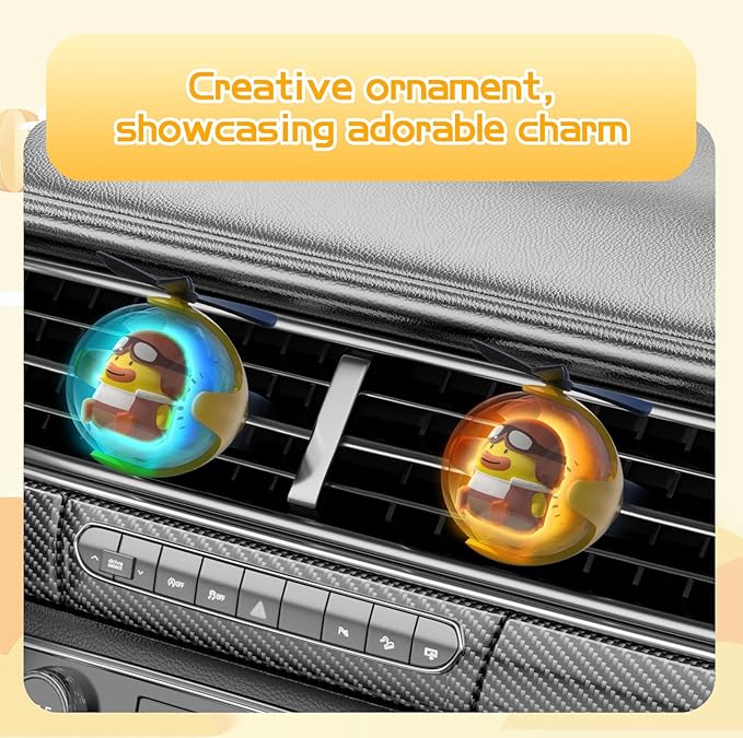 - [Ultimate Adorable Car Gift] -- Combining a kawaii duck design with soft glow ambient lighting, this air freshener doubles as a mood-enhancing decor piece. Perfect for Valentine’s surprises, BFF birthday gifts, or self-care treats for female drivers, its charming look, gentle fragrance, and interactive lights turn every drive into a whimsical experience, delivering warmth and romance to gift receivers.