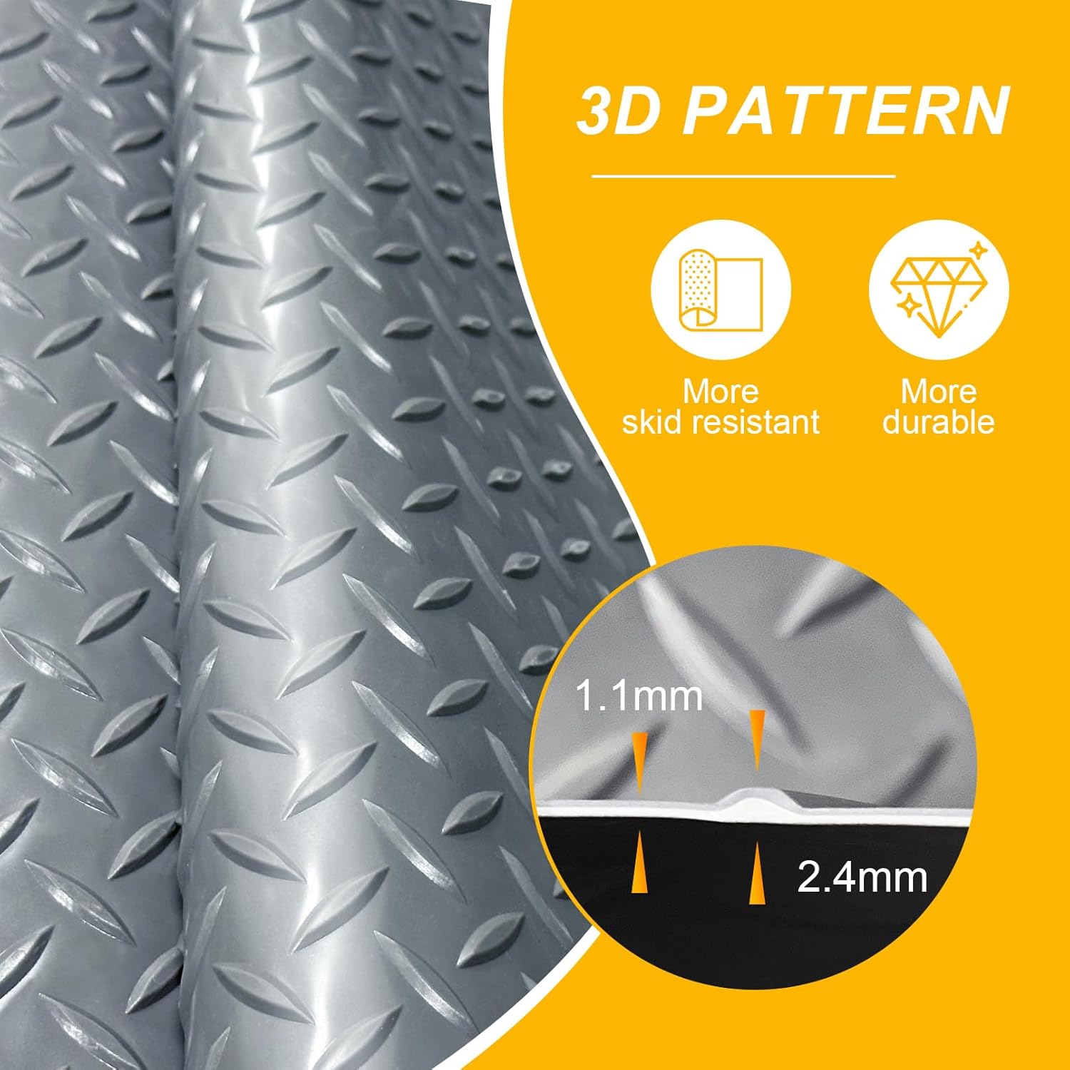 7.5x18 FT Garage Floor Mat, Flooring Roll with 20Pcs Tapes, 135 sqft Diamond Plate PVC Rubber Trailer Mat, Non-Slip Floor Mat for Garage, Warehouse, Gyms, Trailer, Pickup Truck (Grey)