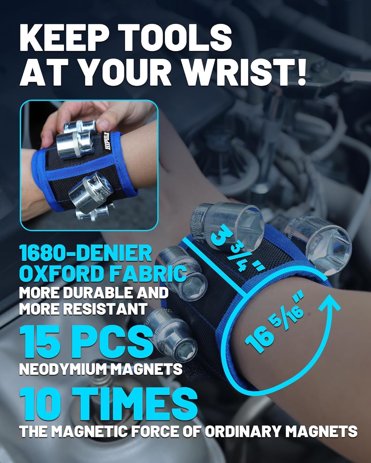 - Never Lose Tools Again: Mat secures 40LBS of tools; pickup retrieves bolts from tight spaces (4LB hold); wristband keeps screws/parts at hand. Double your work efficiency!