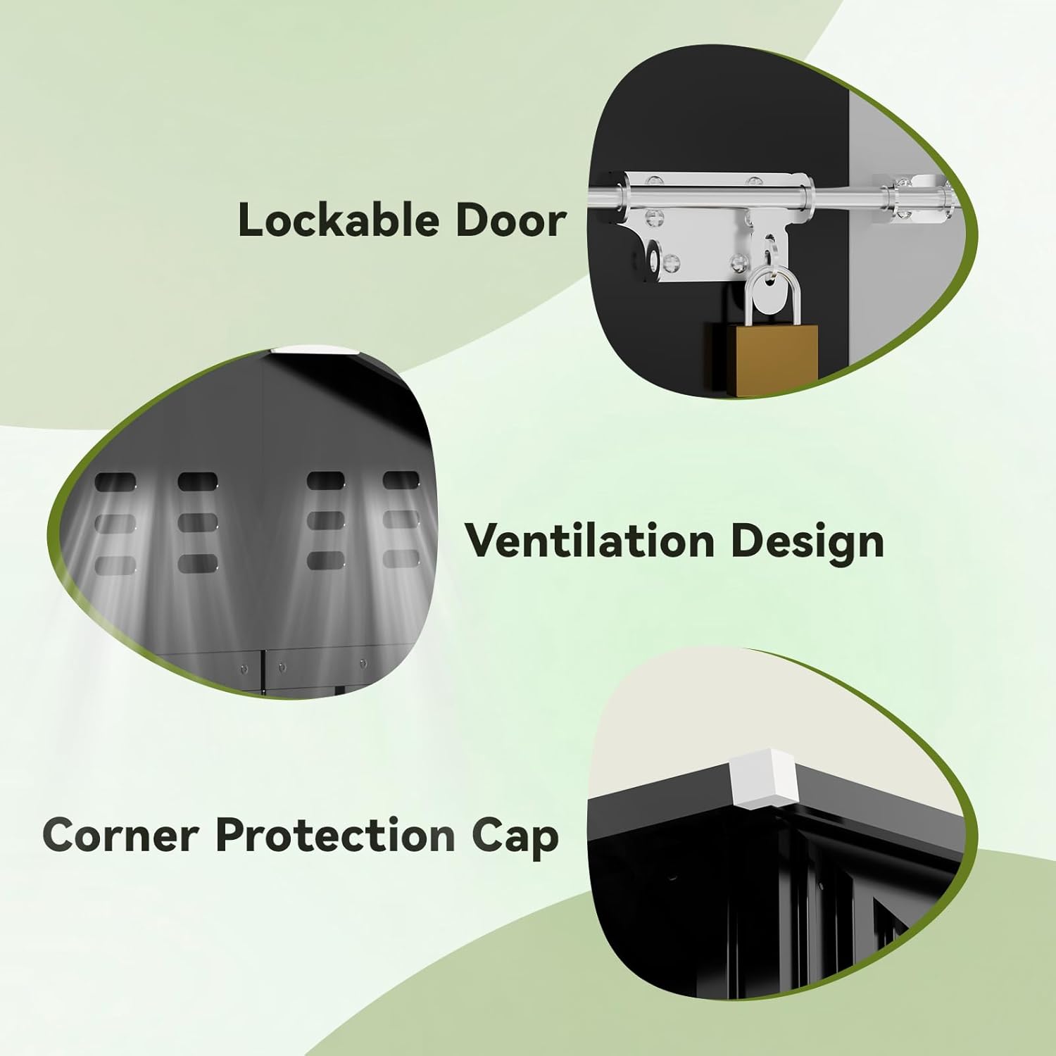 - Lockable Door and Vents:The lockable door provides security,keeps your tools away from being stolen,and avoids small animals from entering accidently;Two Top Vents for Better Airflow,Keeping the Space Cool and Odor-Free