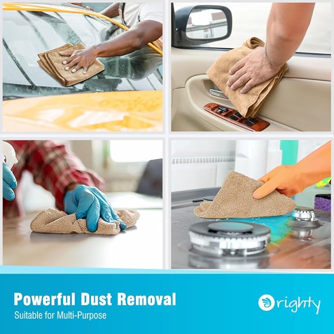 Orighty Microfiber Cleaning Cloth, 12 Pack Microfiber Towels for Cars, Highly Absorbent Car Cleaning Supplies, Lint Free Cloths Clean Rags for Car Care, House, Kitchen, 12x12 inch, Brown