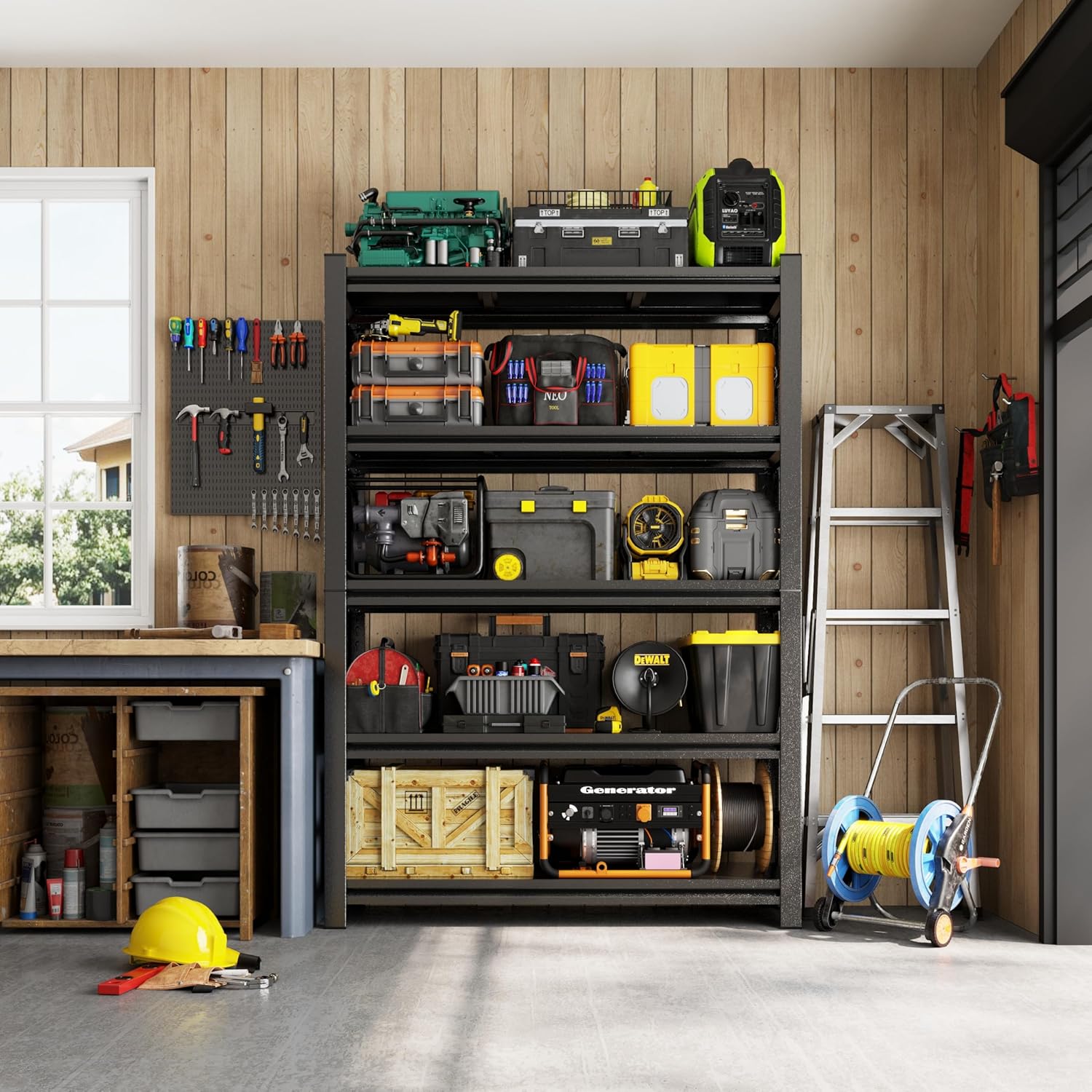 - 【FLEXIBLE STORAGE LAYOUT】It's a 5-tier shelf with adjustable metal garage storage shelves that you can space according to the size of your belongings to optimize your storage layout. Moreover, this multi-functional storage rack is designed with removable connectors, so you can split the metal shelving unit into two separate shelves if necessary to meet different space requirements.