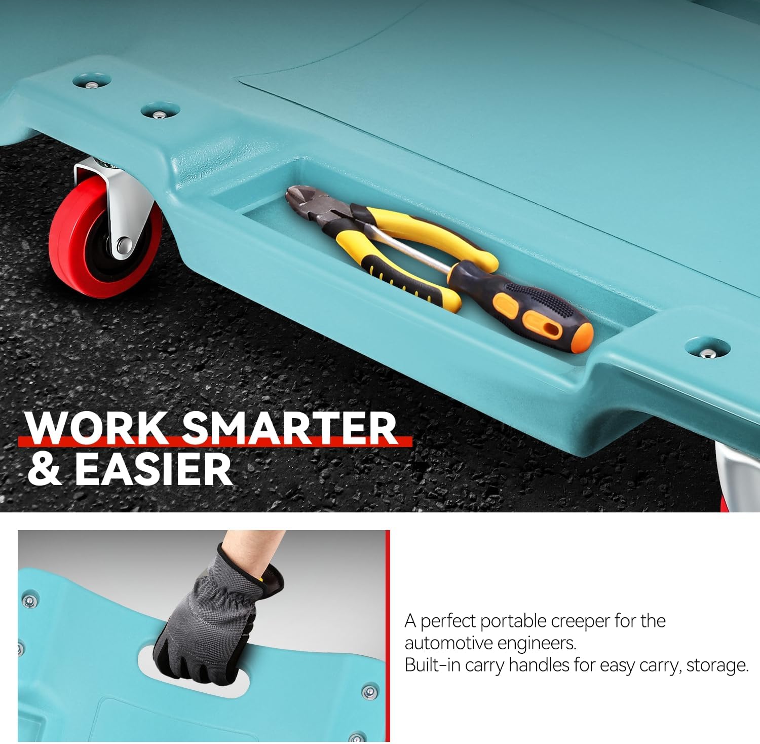 - Portable Style: This 36 inch low profile creeper can also make it easy to pick up, position, and transport with the bottom-positioned carrying handle, which ensures the work in your garage or workshop with ease.