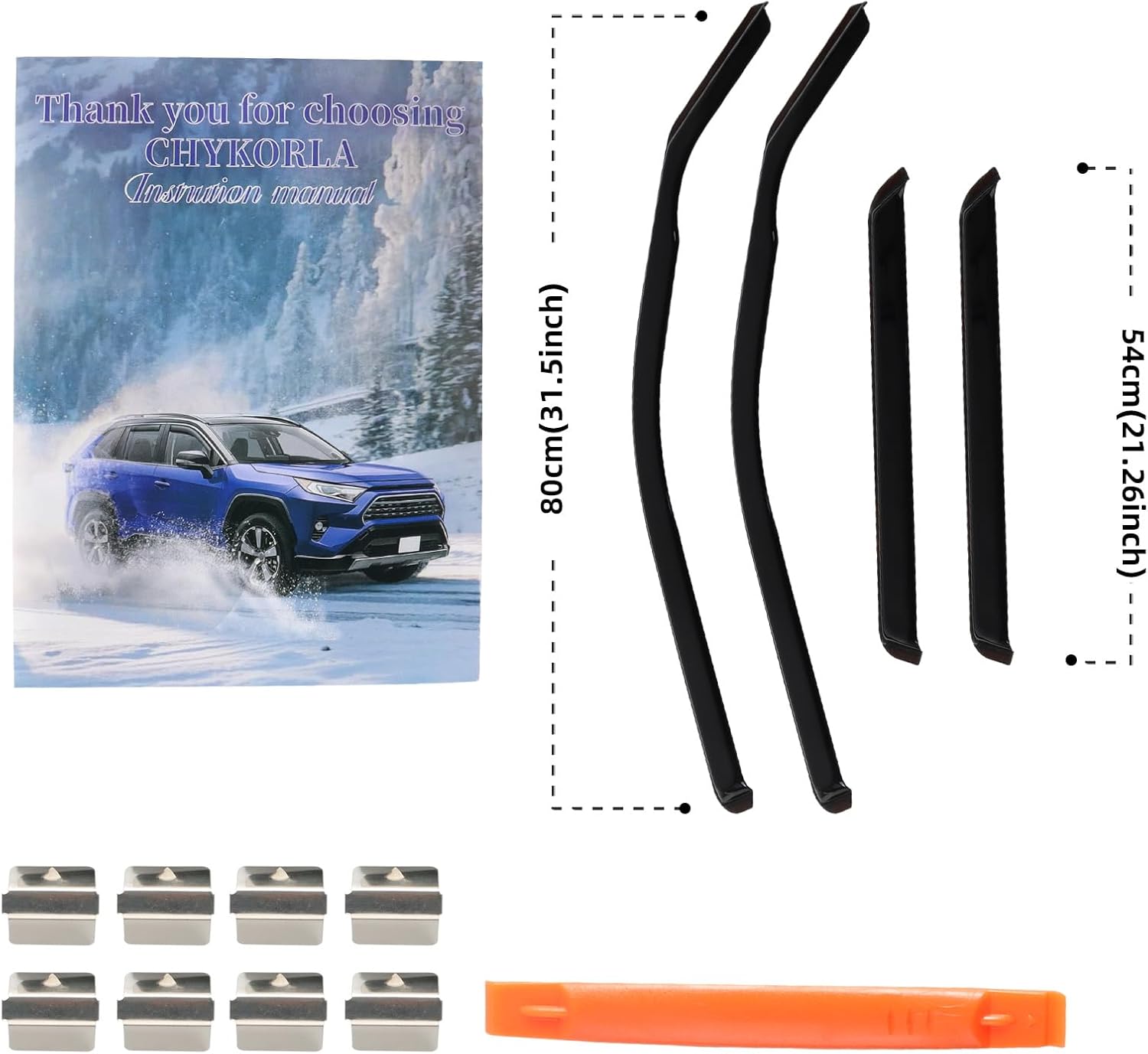 - ăIn Channel Designă Window vent visors install in the window channel, provides perfect fit and sleek look for your car. Come with 4 pcs FULL-SIZE side window deflectors, 8 pcs clips, 1 pcs plastic Crowbar for a durable and secure installation. No complicated instructions are needed. Attention: Please apply the clip to fix the rain guards