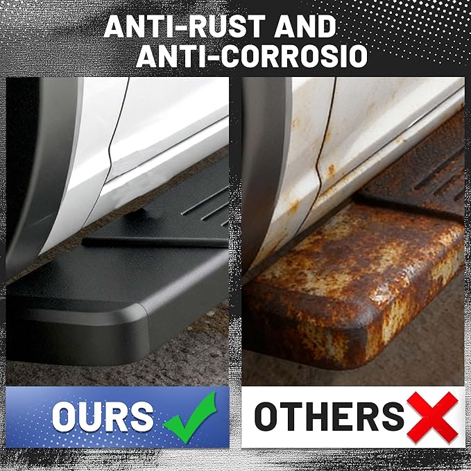 - Extreme Grip & Safety - Upgrated Ridge pattern design with deep-tread grooves, the side Step provides superior traction in wet, snowy, or muddy conditions. Its anti-slip surface ensures maximum safety when stepping in or out of your truck.
