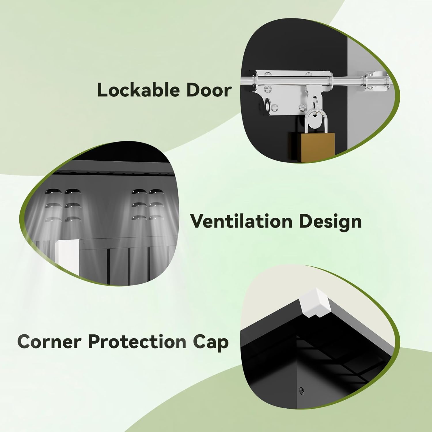 - Lockable Door and Vents:The lockable door provides security,keeps your tools away from being stolen,and avoids small animals from entering accidently;Two Top Vents for Better Airflow,Keeping the Space Cool and Odor-Free