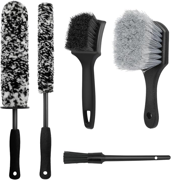 5PCS Wheel Cleaner Brush Kit, Tire Brushes, Rim Cleaner Brush,Car Detailing Brushes, Car Wash Tools for Wheels and Tires No Spatter