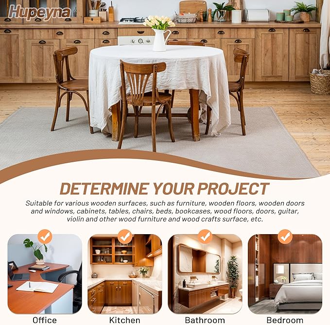 - Apply Simple Hupeyna Furniture Repair Kit: Test Hupeyna wood fillers on white paper for desired color and compare after completely dry to determine desired color. Repair wood filler putty blends easily with wood surfaces and wood touch up filler is covering minor scratches, scuffs, discoloration and stains. Apply Hupeyna wood filler kit to cracks, smooth the surface using a scraper, wipe off excess wood fillers and allow to dry.