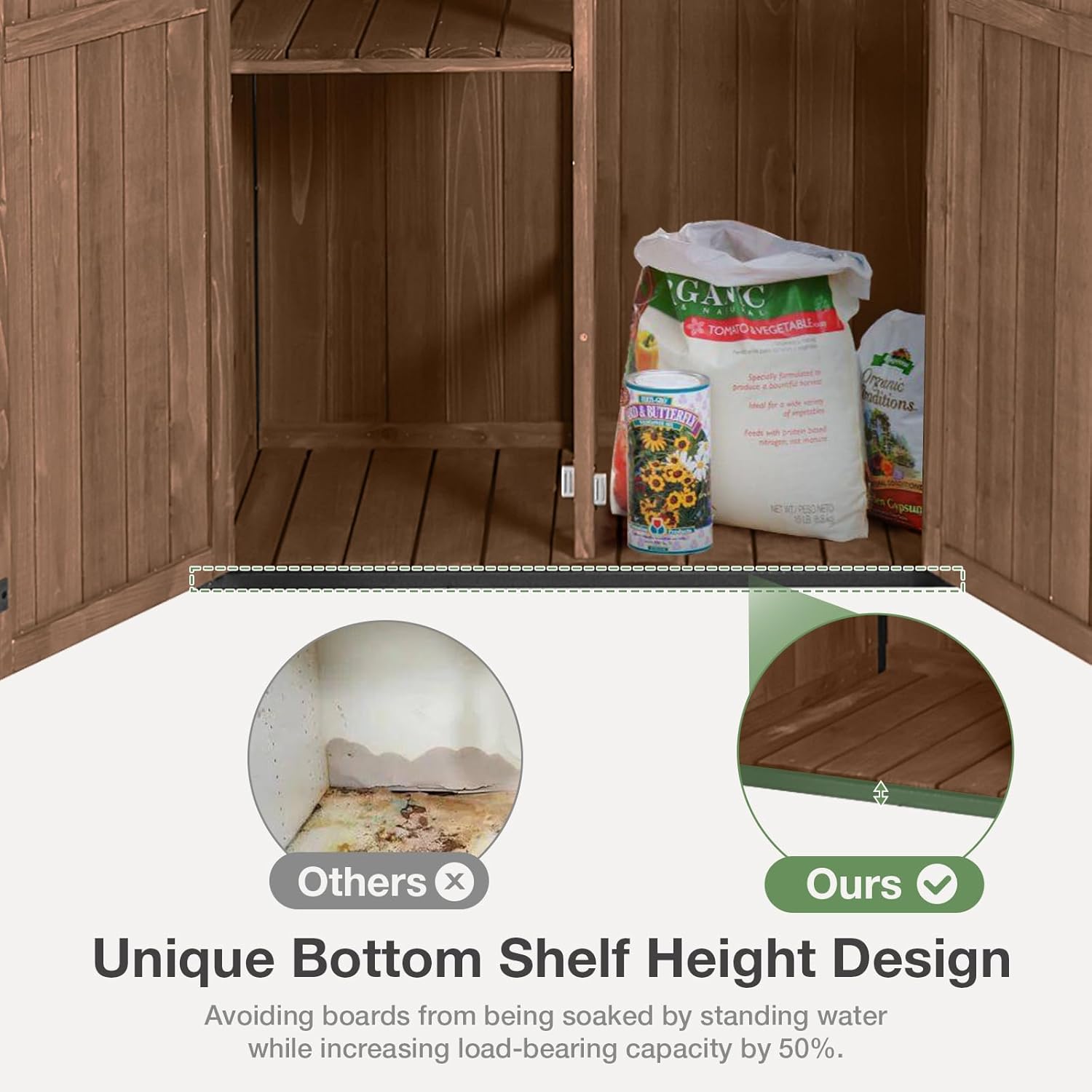 - 🛖【Stable Construction】: Our outdoor garden sheds are made of natural fir wood and metal brackets that are more than three times as stable as other products, ensuring they withstand various weather conditions for long-lasting durability