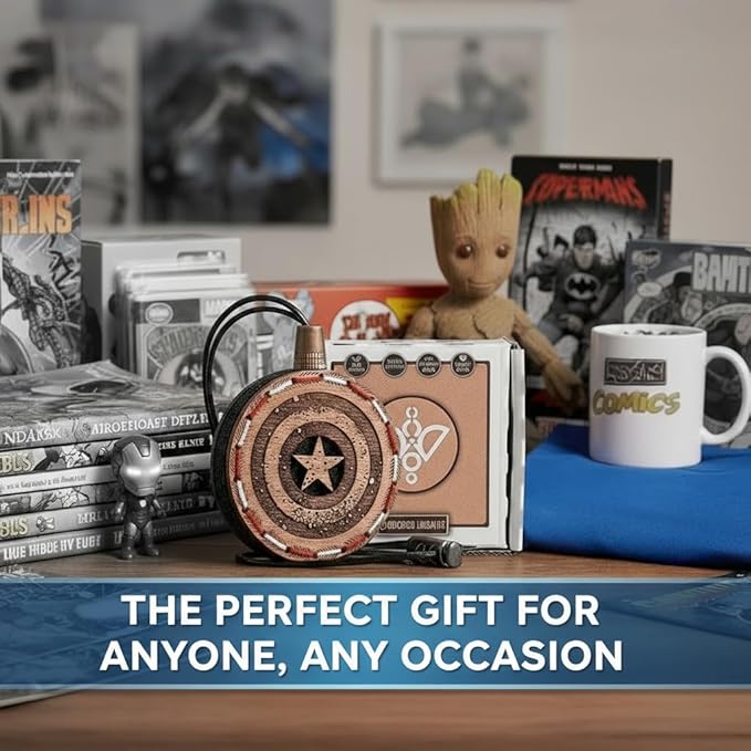 Wood Car Air Freshener — Captain Shield Handmade Unscented DIY Essential Oil Hanging Diffuser with Felt Insert — Add Your Own Oils — Refillable — Car/Truck/SUV — Cardboard Box