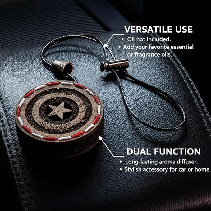 Wood Car Air Freshener — Handmade Car Air Freshener — Captain Shield Designed Fragrance Oil Diffuser in Wooden Gift Box — Aromatherapy Gift Set with diAquatoria Fragrance Oil - 10 ml