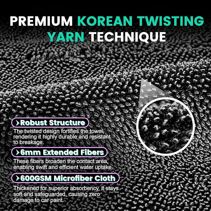 - 【EXCEPTIONAL ABSORBENCY & QUICK DRYING】 The TEAWOO Car Drying Towel, with advanced tech, absorbs up to 8 times its weight in water. It dries cars fast, whether after rain or a wash, saving you time and effort.