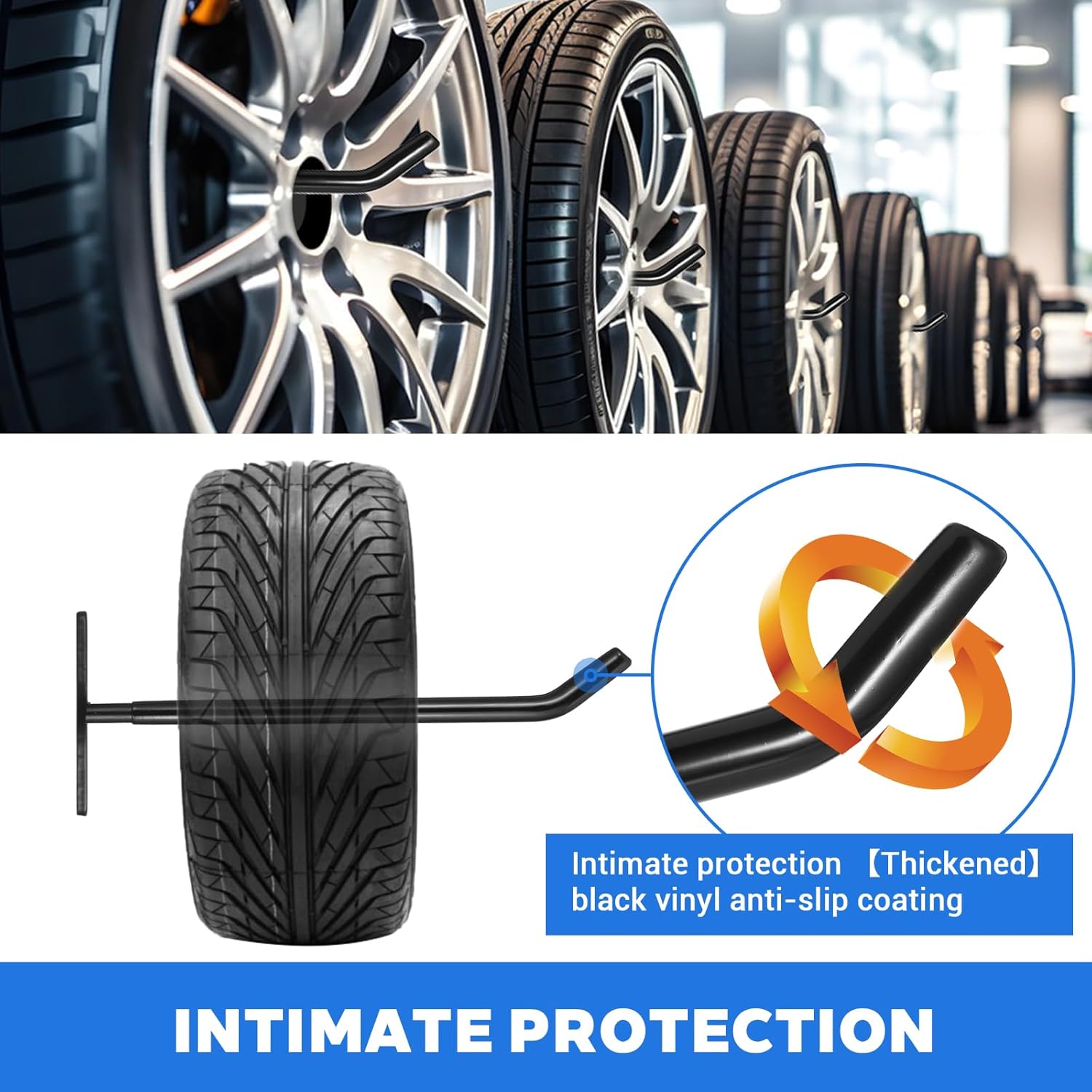 - 【SMART LOAD DISTRIBUTION】Tire rack wall mount design evenly distributes weight across 4 contact points. Ideal for 33" tires, seasonal decorations, sports gear, and holiday bulk items.