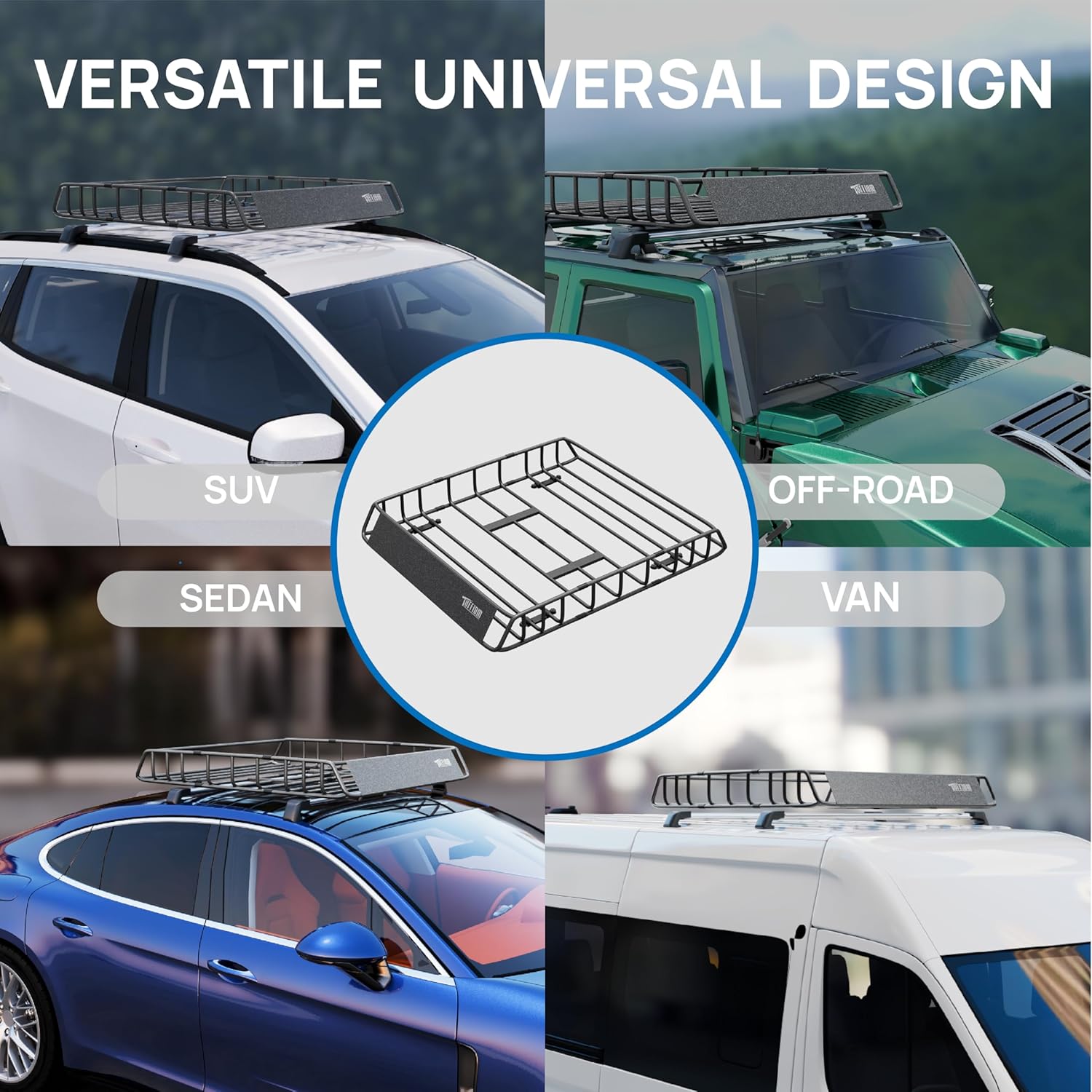 TUFFIOM 46"x 36"x 6" Universal Rooftop Cargo Carrier Basket, Heavy Duty Steel Roof Rack Basket w/4 Straps with Hook, Car Top Rack Luggage Holder Carrier for SUV Car Truck Van