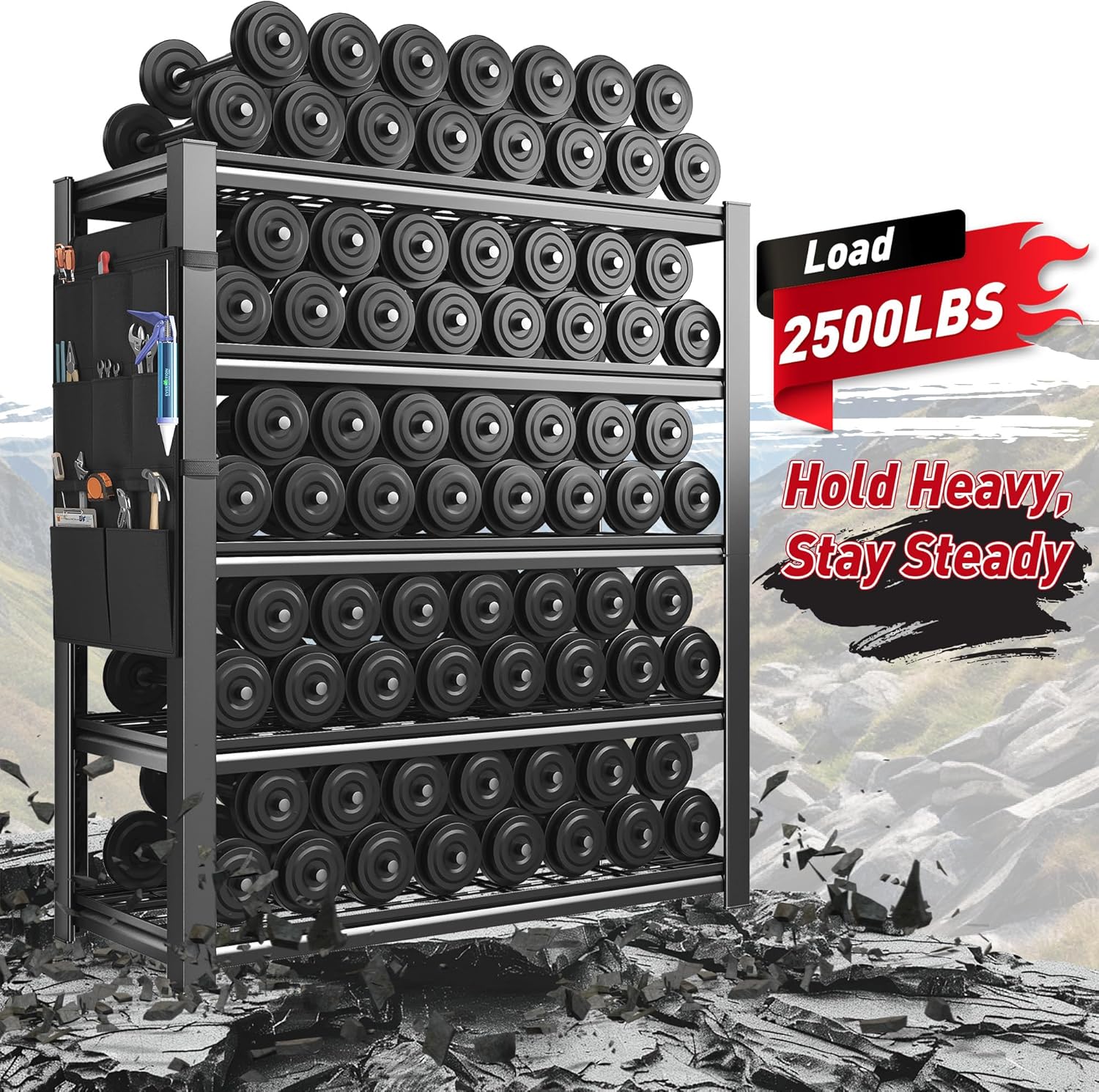 - ă2500LBS Heavy-Duty Garage ShelvingăThis garage shelving unit features double-walled steel columns for enhanced durability, supporting up to 500 LBS per shelf (2500 LBS total capacity). You can safely store bulky tools, auto parts, or holiday decorations with no risk of bending or collapse