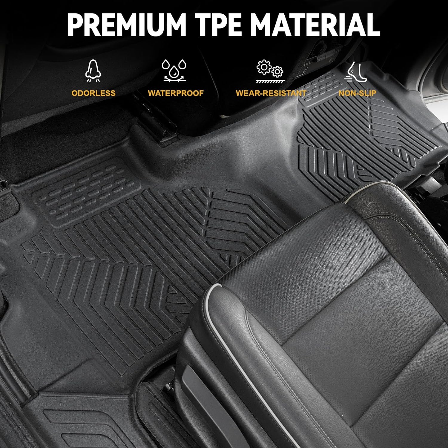 - Custom Fitment: Precisely engineered with 3D laser scanning for 2021 2022 2023 2024 2025 Chevy Suburban / GMC Yukon XL with 7-passenger seating (2nd-row Captain's Chairs). Includes floor mats, cargo liner, 3rd row seat back protectors, 4PCS door sill guards – 30% more components than standard sets