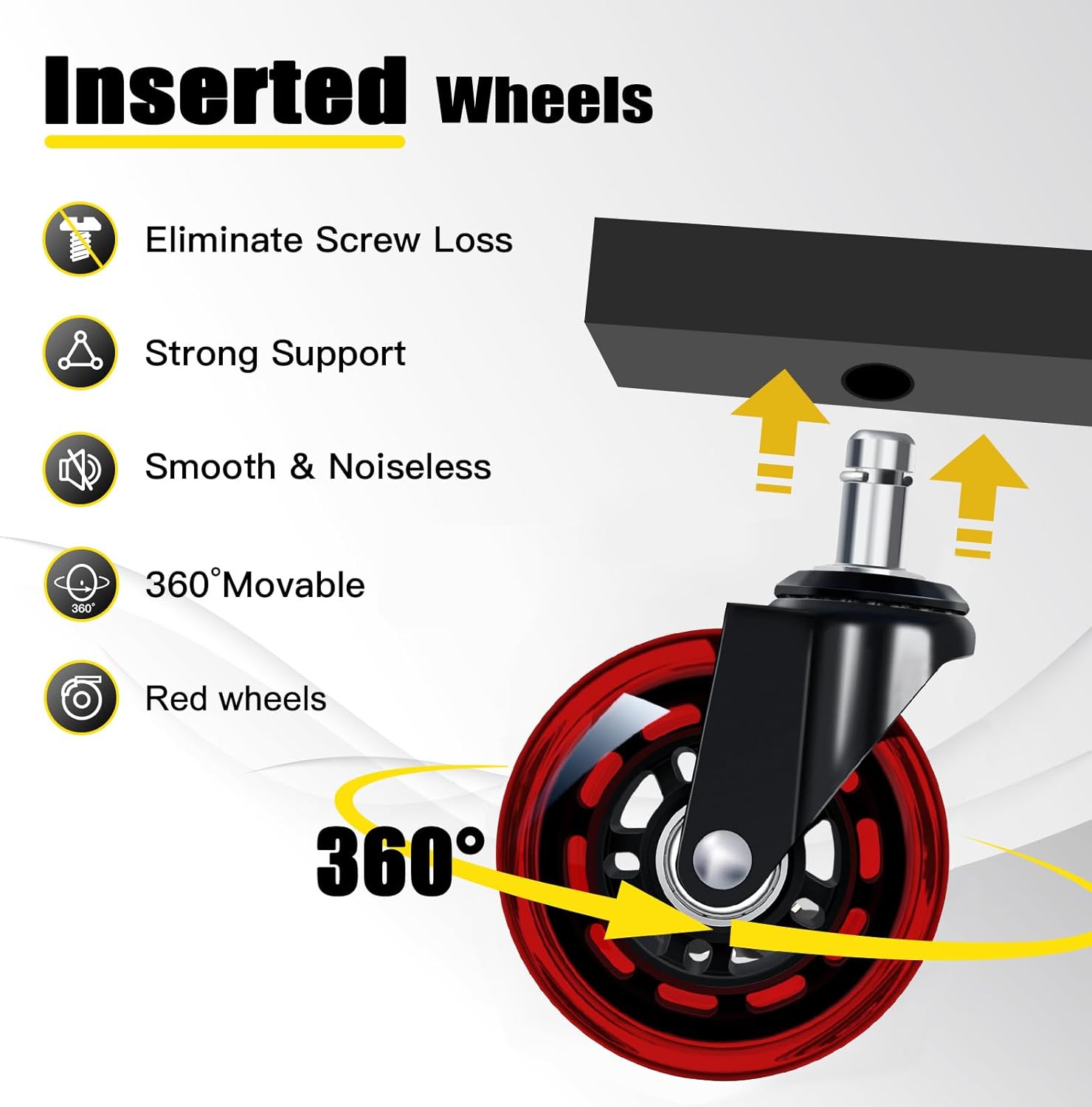 - 360° Swivel Rubber Red Wheels--The rolling shop stool is equipped with 4 pieces 360°swivel red silent rubber wheels (without lockable brake). Like a ruby, the color of the wheel changes from dark red to bright red as the light transitions from dim to bright. 3 inch Smooth-rolling casters enhance mobility, easily over cracks and debris on floor.