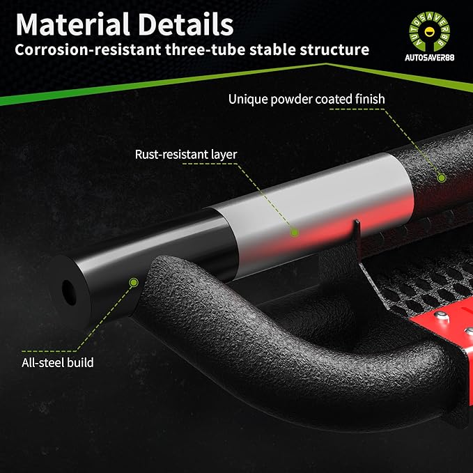 - Durable Material: These step bars are made of heavy duty carbon steel with textured black powder coated surface for excellent rust and corrosion resistance