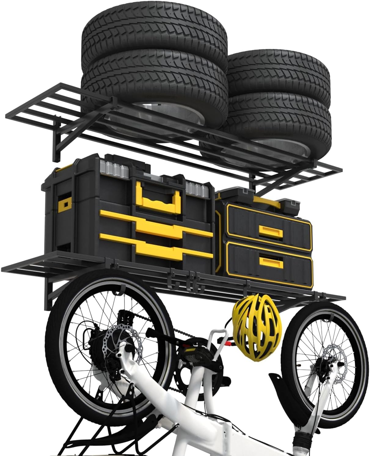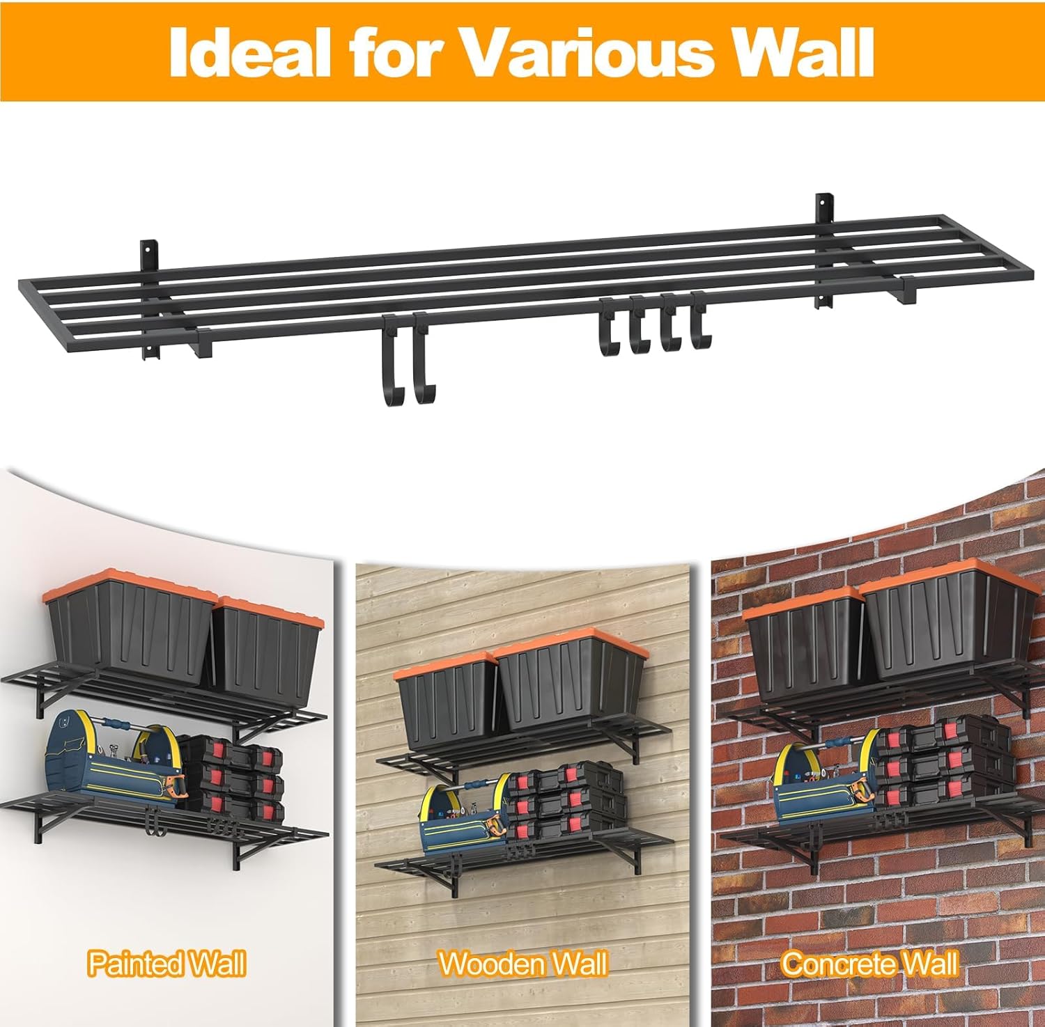 2-Pack 1×4ft Steel Wall Mounted Garage Shelves with Hooks, 300LB Each Heavy Duty Shelving for Garage Storage & Organization
