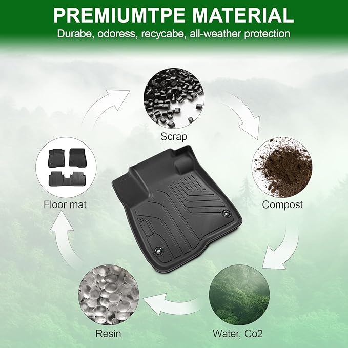 - All Weather-protection: Lumway floor mats crafted from premium TPE material, designed for durability, has recycling potential, and shield your floor from dirt, mud, salt, rain, snow, and even hot summer temperatures. Easy to clean, they ensure your vehicle's interior stays fresh and well-maintained year-round