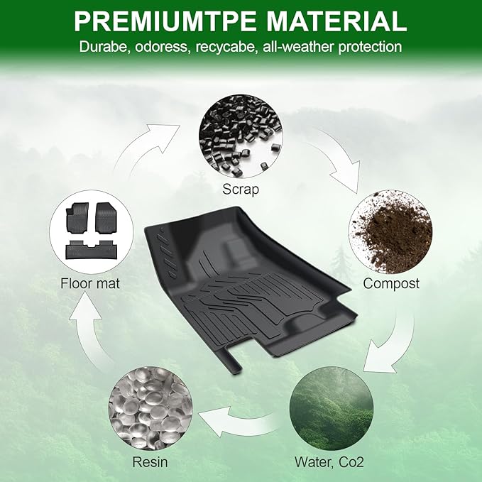 - All Weather-protection: Lumway floor mats crafted from premium TPE material, designed for durability, has recycling potential, and shield your floor from dirt, mud, salt, rain, snow, and even hot summer temperatures. Easy to clean, they ensure your vehicle's interior stays fresh and well-maintained year-round