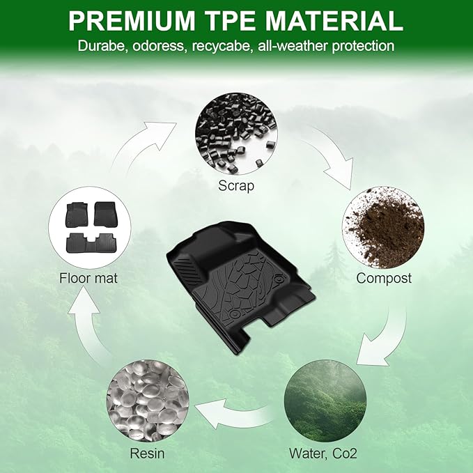 - All-Weather Protection: Made from odorless, durable, and recyclable TPE, these waterproof, non-slip mats shield your floor from dirt, salt, rain, snow, and summer heat—keeping your interior clean year-round. Easy to clean and built to last