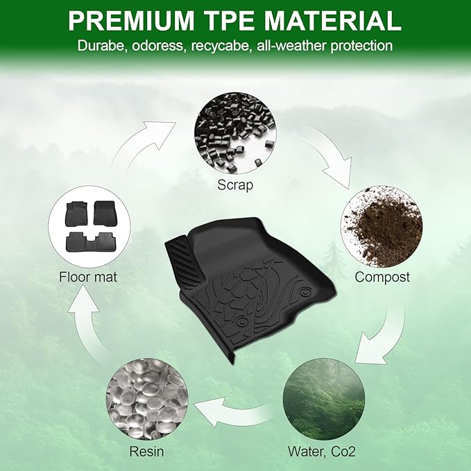 - All-Weather Protection: Made from odorless, durable, and recyclable TPE, these waterproof, non-slip mats shield your floor from dirt, salt, rain, snow, and summer heat—keeping your interior clean year-round. Easy to clean and built to last