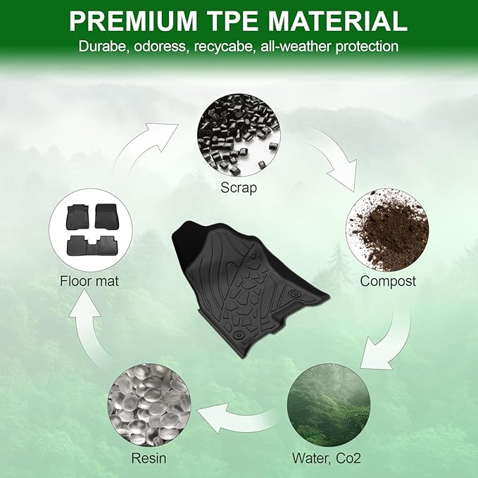 - All-Weather Protection: Made from odorless, durable, and recyclable TPE, these waterproof, non-slip mats shield your floor from dirt, salt, rain, snow, and summer heat—keeping your interior clean year-round. Easy to clean and built to last