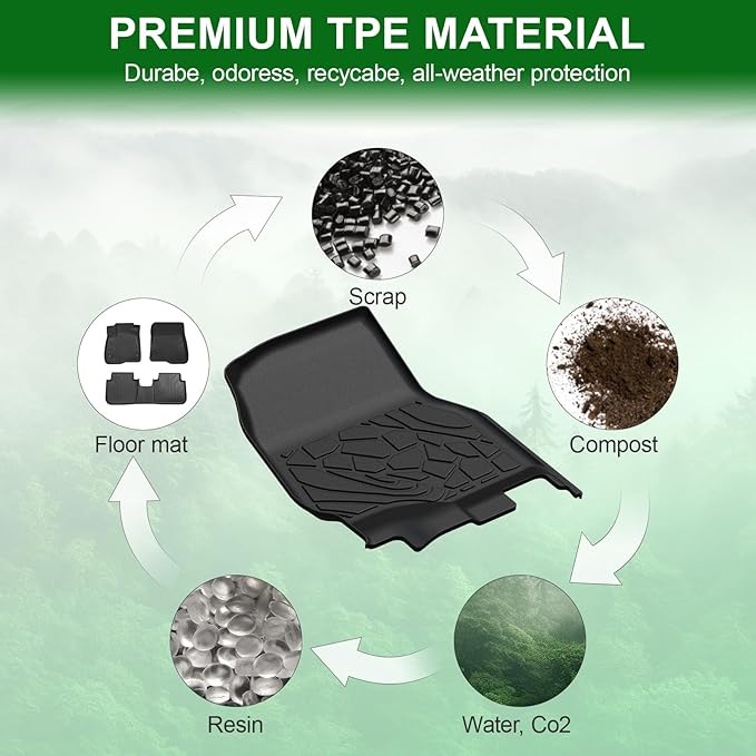 - All-Weather Protection: Made from odorless, durable, and recyclable TPE material, these waterproof, non-slip mats shield your floor from dirt, salt, rain, snow, and summer heat—keeping your interior clean year-round. Easy to clean and built to last
