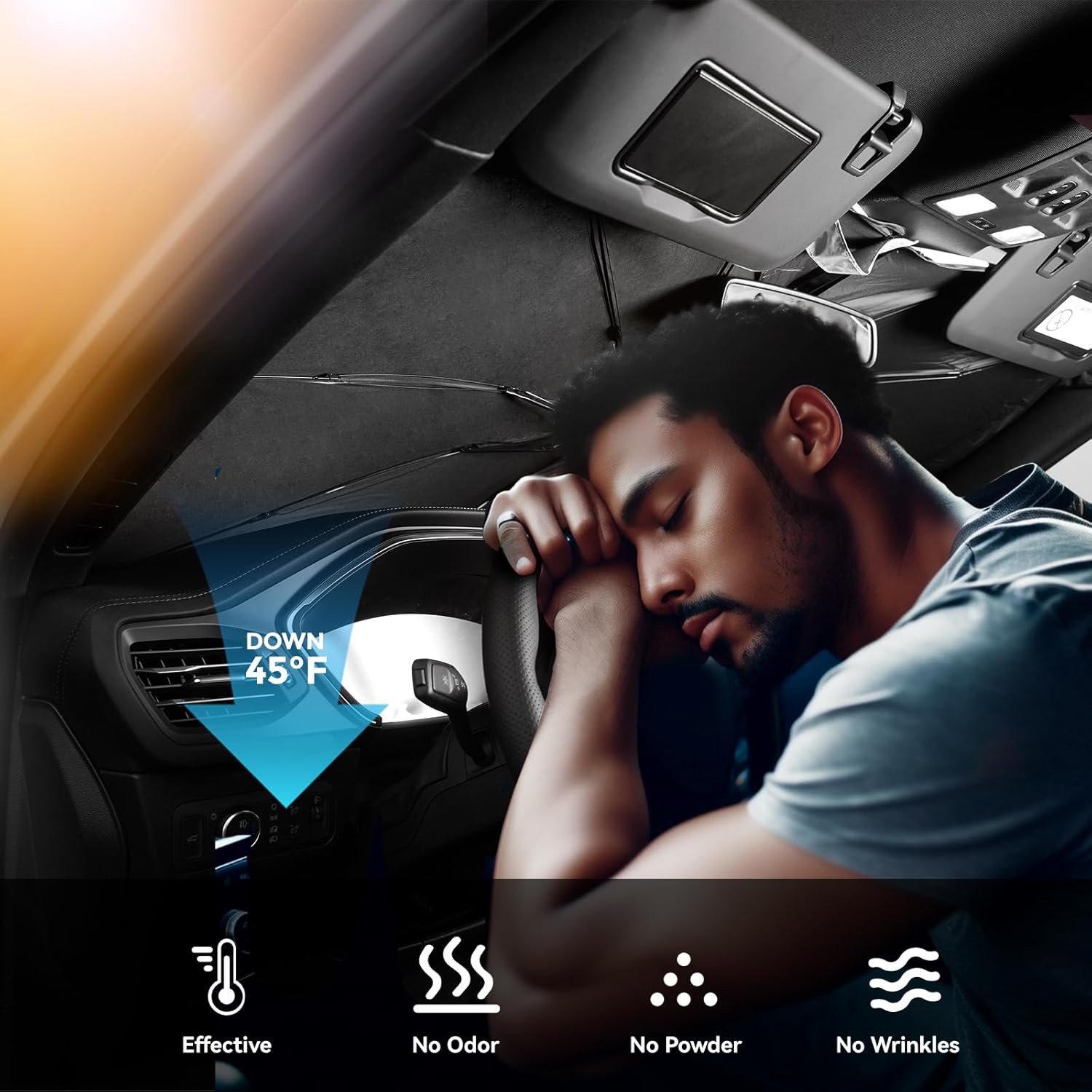 - 99 % UV Protection & Interior Protection – Multi‑layer reflective material blocks 99 % UV rays, protecting dashboard and seats from fading and aging